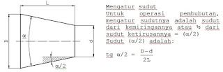 Diketahui : D (diameter besar tirus) = 60 mm; d (diameter kecil tirus) = 40 mm; L (panjang tirus) = 100 mm