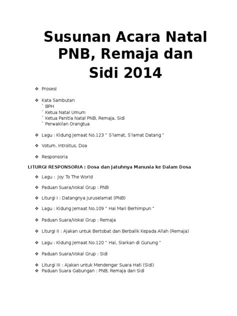 5. Susunan acara tentang natal beserta kalimat kalimat yang ada di isi urutan acara